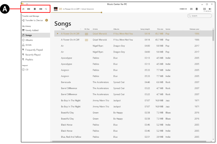 De nummers in de afgebeelde lijst met inhoud in willekeurige volgorde afspelen. - Herhaal 1 nummer: