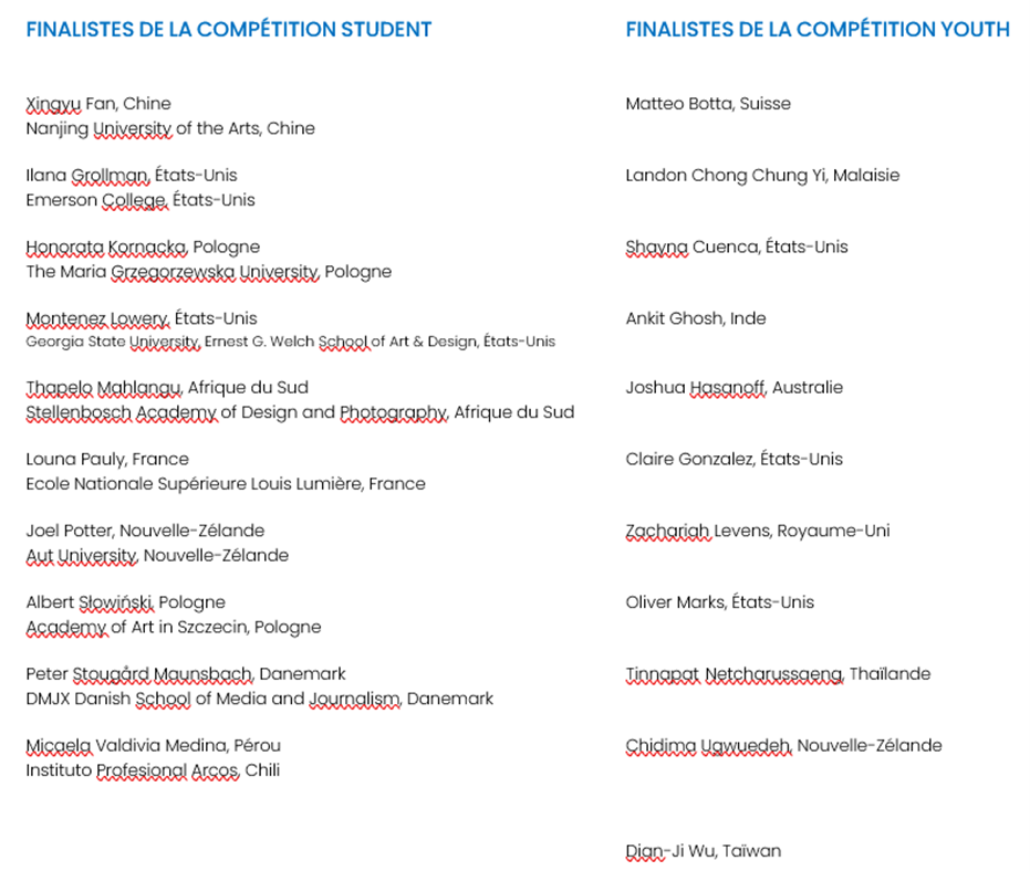 - Dix étudiants en photographie venant des principales universités du monde entier sont célébrés dans la sélection finale de cette année, ainsi que onze photographes âgés de 19 ans ou moins.