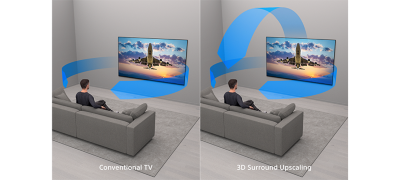 Plongez en immersion. Notre conversion ascendante 3D Surround crée un son Surround virtuel provenant d'en haut et des côtés à l'aide des seuls haut-parleurs du téléviseur. Même le son 2 canaux et 5.1 canaux est converti en un son 5.1.2 canaux immersif. De plus, la prise en charge de Dolby Atmos® et de DTS:X offre un son spatial inoubliable.