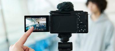 Le positionnement des principales commandes ainsi que l'écran LCD orientable s'ouvrant sur le côté ont été pensés pour faciliter la prise de selfies et la réalisation de vlogs. L'écran LCD permet de vérifier facilement le cadrage lors de la prise de vue sous n'importe quel angle, tandis que le bouton REC, la molette Photo/Vidéo/Ralenti, les boutons personnalisés et les autres commandes sur le panneau supérieur de l'appareil ont été disposés pour offrir un accès et une utilisation aisés.