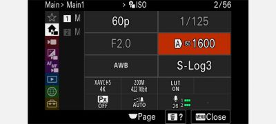 Le ZV-E1 offre un accès rapide aux éléments fréquemment utilisés, tels que la fréquence d'images, la vitesse d'obturation et d'autres paramètres de prise de vue essentiels, grâce à un menu principal sous forme de liste. L'affichage de ce menu peut être assigné à un bouton personnalisé pour pouvoir vérifier et modifier rapidement les paramètres avant la prise de vue. Des menus principaux distincts, optimisés pour les films et les photos, sont également disponibles.
