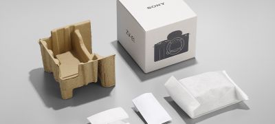 L'emballage extérieur du ZV-E1 fait appel au "matériau mixte original de Sony", composé de bambou, de canne à sucre et de papier recyclé. Il ne contient pas de plastique. Ce matériau spécial permet de produire un emballage recyclable de haute qualité et durable, au faible impact environnemental.